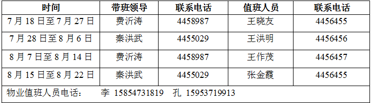 为了保证2019年暑假期间学院有关工作的正常、稳定运行,并使老师们在一学期的繁忙工作后安全、充实地度过这个假期,现将暑假期间有关工作通知如下: