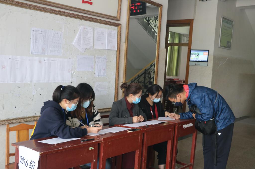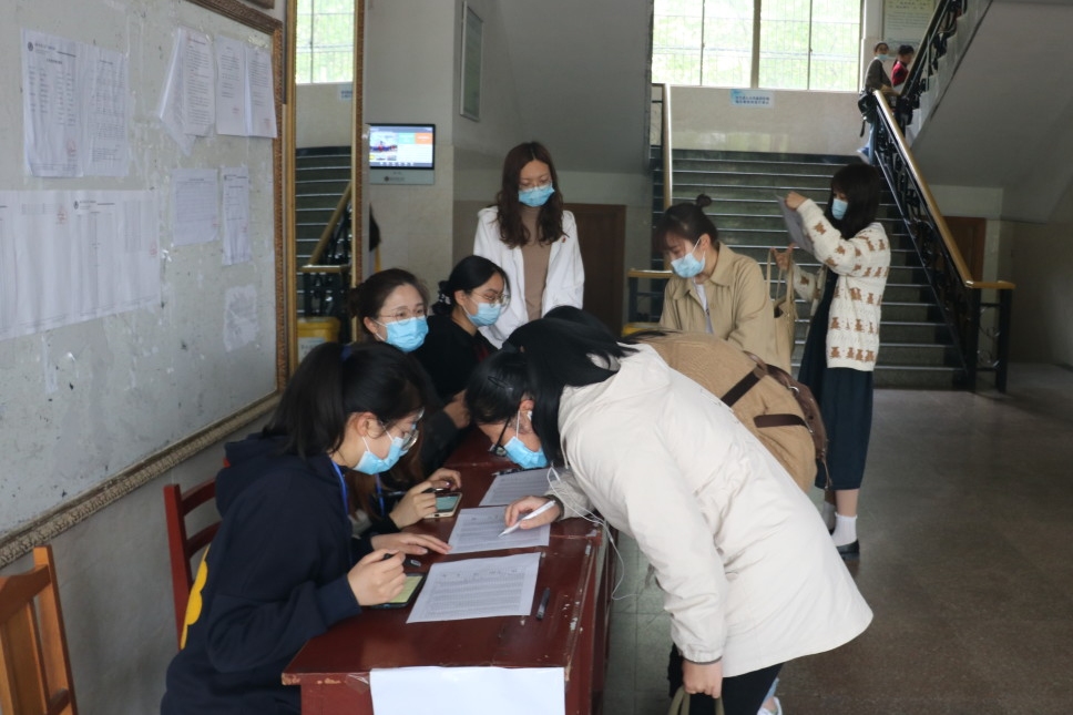 早上七点三十分,在疫情防控常态化及引导工作的管理下,合法赌博网站 学生代表在学院门口帮助考生们进行体温测量。进门后,两侧分别为15级、16级考生的登记处,合法赌博网站 全体辅导员及团委学生会部分学生干部为考生登记信息并维持进场秩序,为未佩戴口罩的同学提供防疫用品,保障考试的顺利进行,并鼓励考生们放平心态,沉着应对。