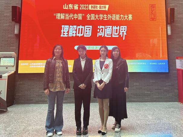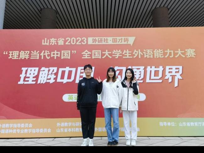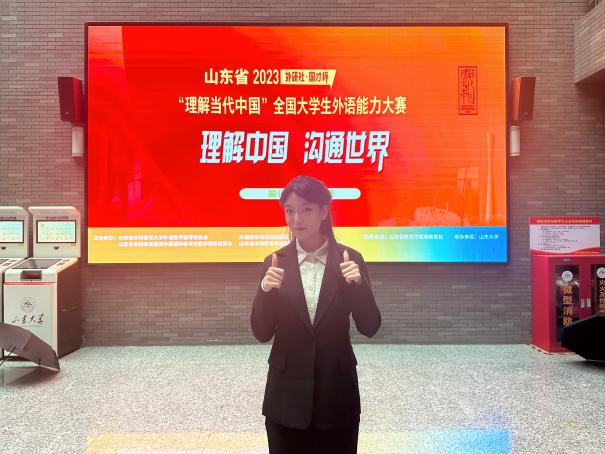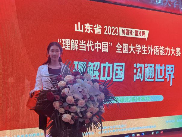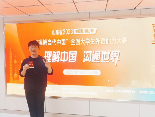 演讲组比赛历时三天,大赛分为两个阶段,包括定题演讲、即兴演讲和回答问题。在孔艳艳老师的指导下,英语专业2020级翟欣然和2021级沈冰顺利完成两阶段比赛,翟欣然获得山东省一等奖,沈冰获得山东省二等奖,两人均晋级国赛。