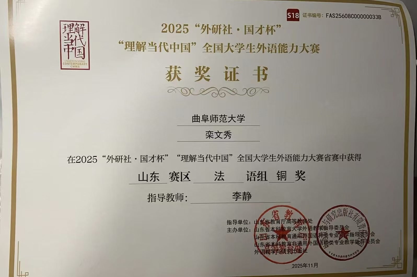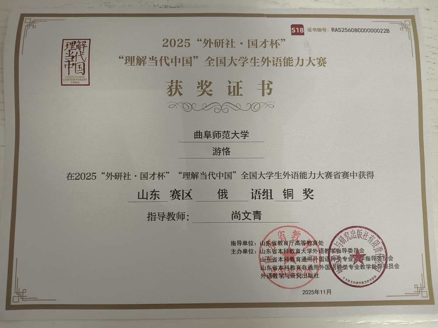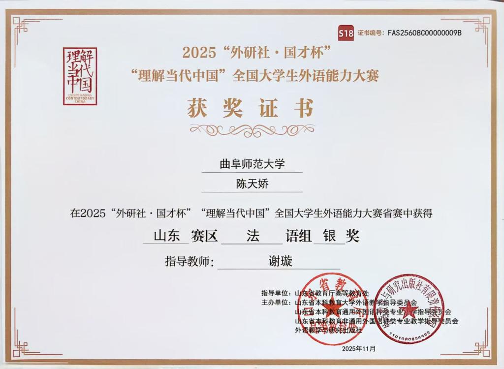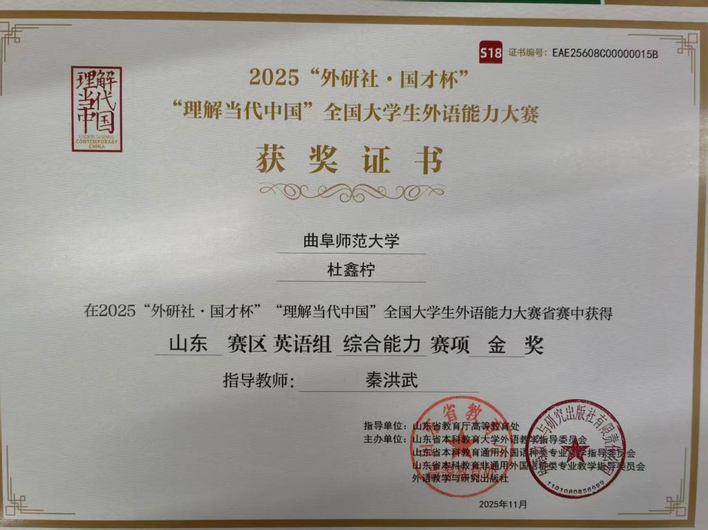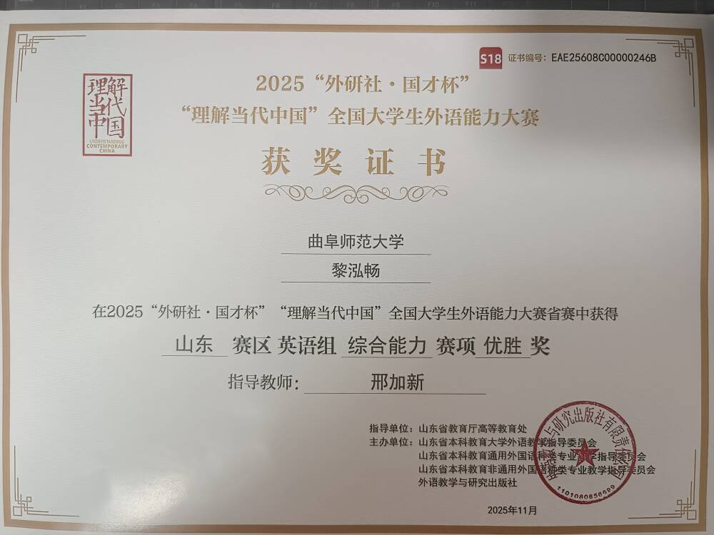 近日,2025“外研社·国才杯”“理解当代中国”全国大学生外语能力大赛山东省省赛顺利举行,来自全省各大高校的学生参加本次比赛,经过激烈的角逐,合法的赌博网站