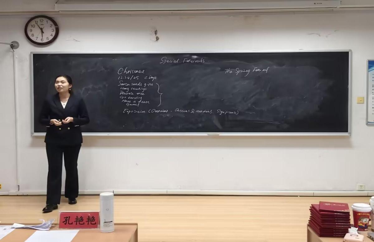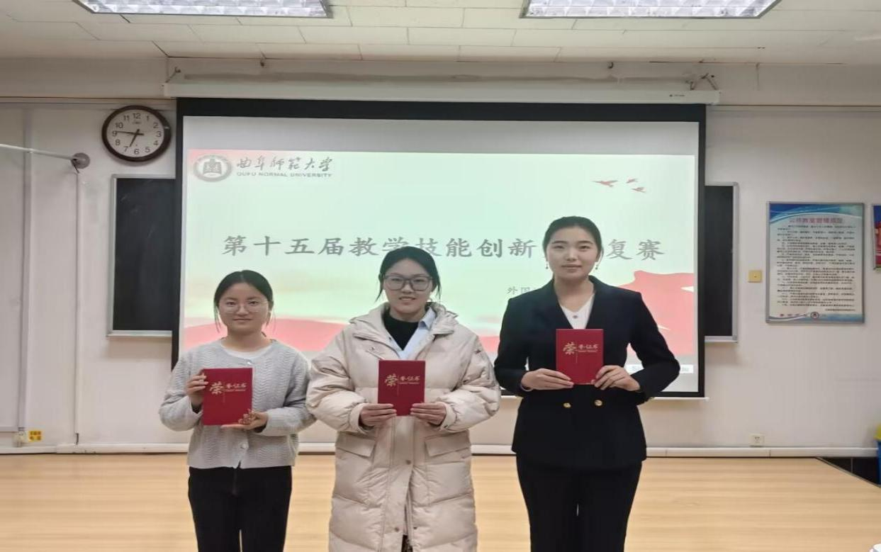 于系楼301教室举办第十五届本科师范生教学技能创新大赛。鲁艳芳、刘萍、孔淑娟、孔艳艳四位老师受邀担任本次大赛评委。