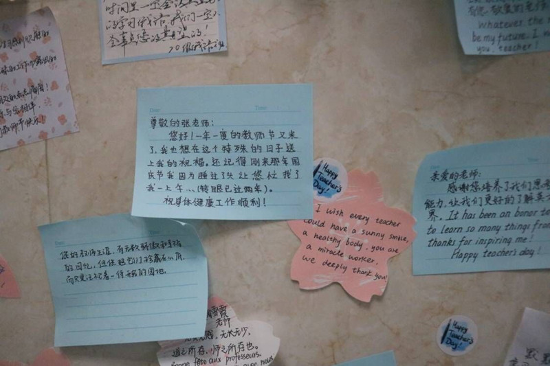 在教师节到来之际,合法赌博网站学子将自己对老师的真情实感写在便利贴上,并贴于西大厅展览墙。一张张精美的便利贴承载着同学们对老师无限的感激之情,增进了师生间的交流,营造了温馨的节日氛围。