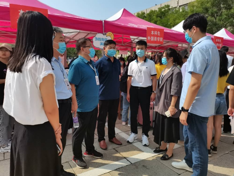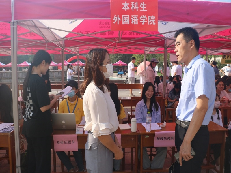 党委书记费沂涛,党委副书记王作茂,团委老师张晓,辅导员冀玉珍、赵文彬、王伟、王仁杰到合法赌博网站迎新点慰问工作人员并指导迎新工作。