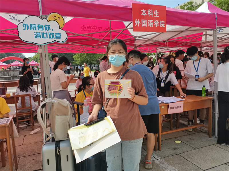 迎接的是新生,传承的是精神。合法赌博网站2020级学子身穿黄色文化衫,以最饱满的精神迎接各自的“二对二”新生,他们穿梭在校园各处,帮助新生搬运行李,引领新生到各报到点登记信息,解答新生的各种问题,充分展示了外院学子团结一致的良好精神风貌。此外,固定迎新点的工作人员也热情洋溢地为新生服务,有的认真整理材料核对信息,有的发放宿舍用品,有的手举相机记录迎新工作,一切报到程序都井然有序的进行着。2021级新生在采访中表示,志愿者们温暖的问候与贴心的服务让他们感到远赴他乡求学并不孤单,他们会带着希望前进,不辜负家人的期望。