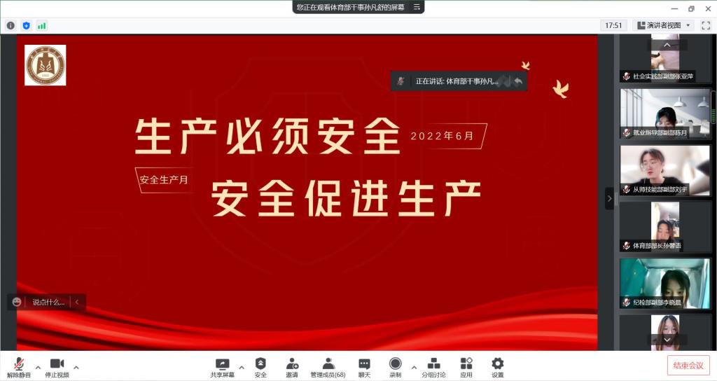 体育部于腾讯会议开展了安全知识技能培训,体育部干事孙凡舒为同学们普及了有关“安全生产月”的知识。6月7日至6月20日,合法赌博网站