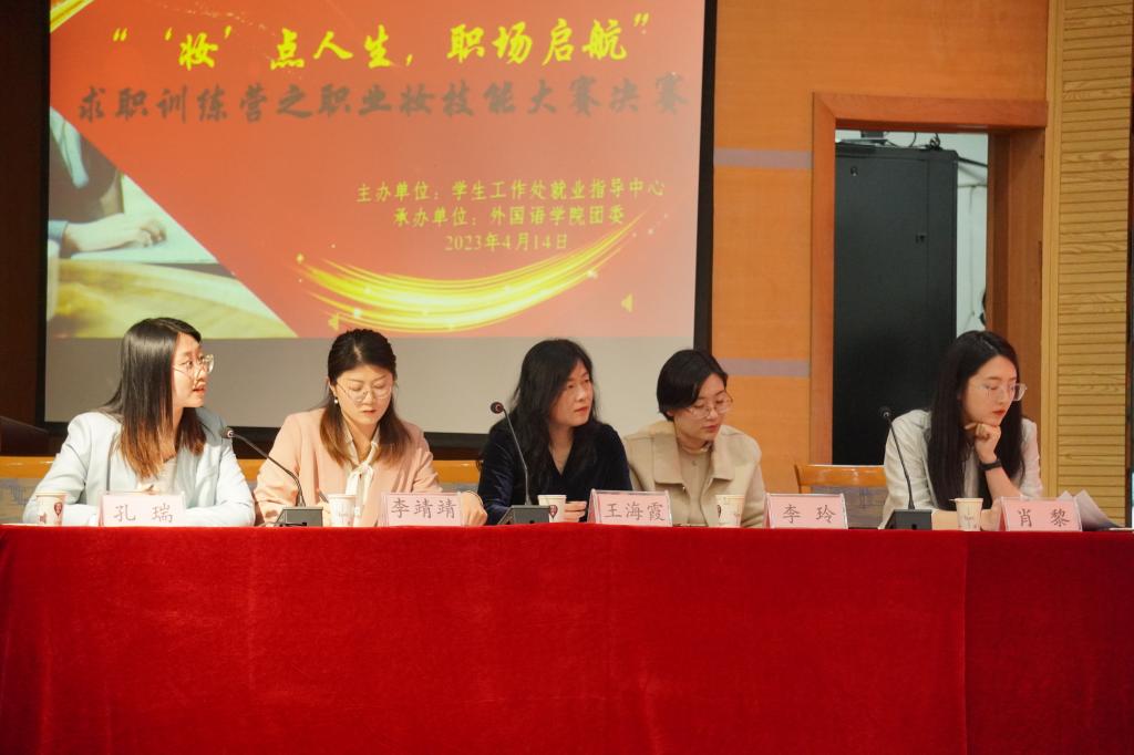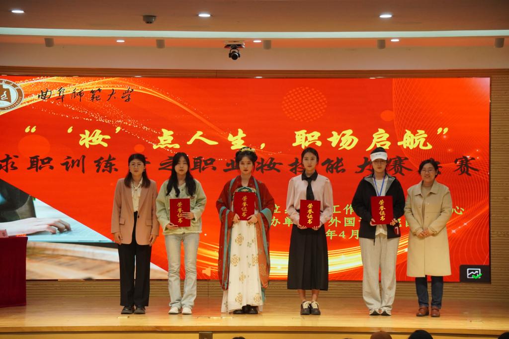 经过初赛的激烈角逐,共有12个学院的12组选手进入决赛。比赛开场,一支舞蹈《纸扇书生》激起了观众的热情。比赛过程分为模特展示、妆容介绍和模拟面试三个环节,各组选手在三个环节均展现出大方得体的妆容形象、沉着冷静的心理素质和较强的随机应变能力。最终,王紫依、周海洋两组选手获得一等奖,闫敏等四组选手获得二等奖,陈颜彬等六组选手获得三等奖。
