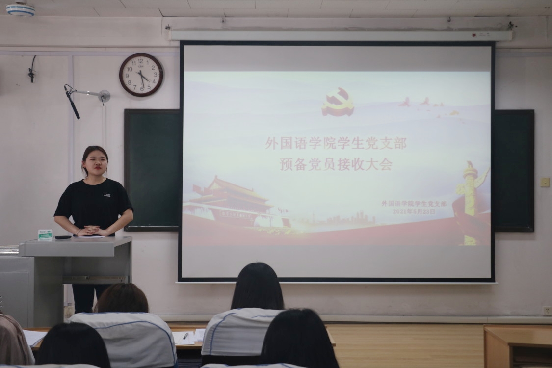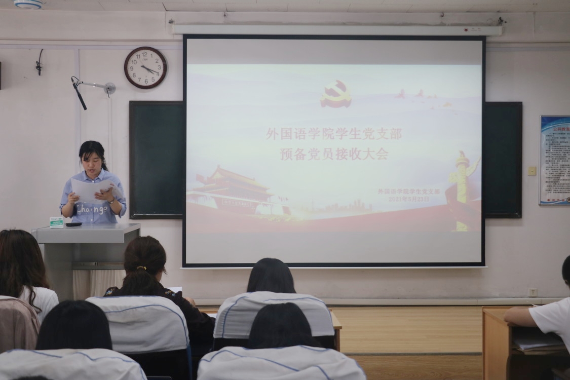 学生党支部于301教室召开2021年第二批预备党员接收大会。本次会议由支部副书记郑雯雯主持,学院党委组织员张晓到会指导,学生党支部全体党员参加。会议讨论发展对象王明珠、孙娜娜等56位同志的入党问题。