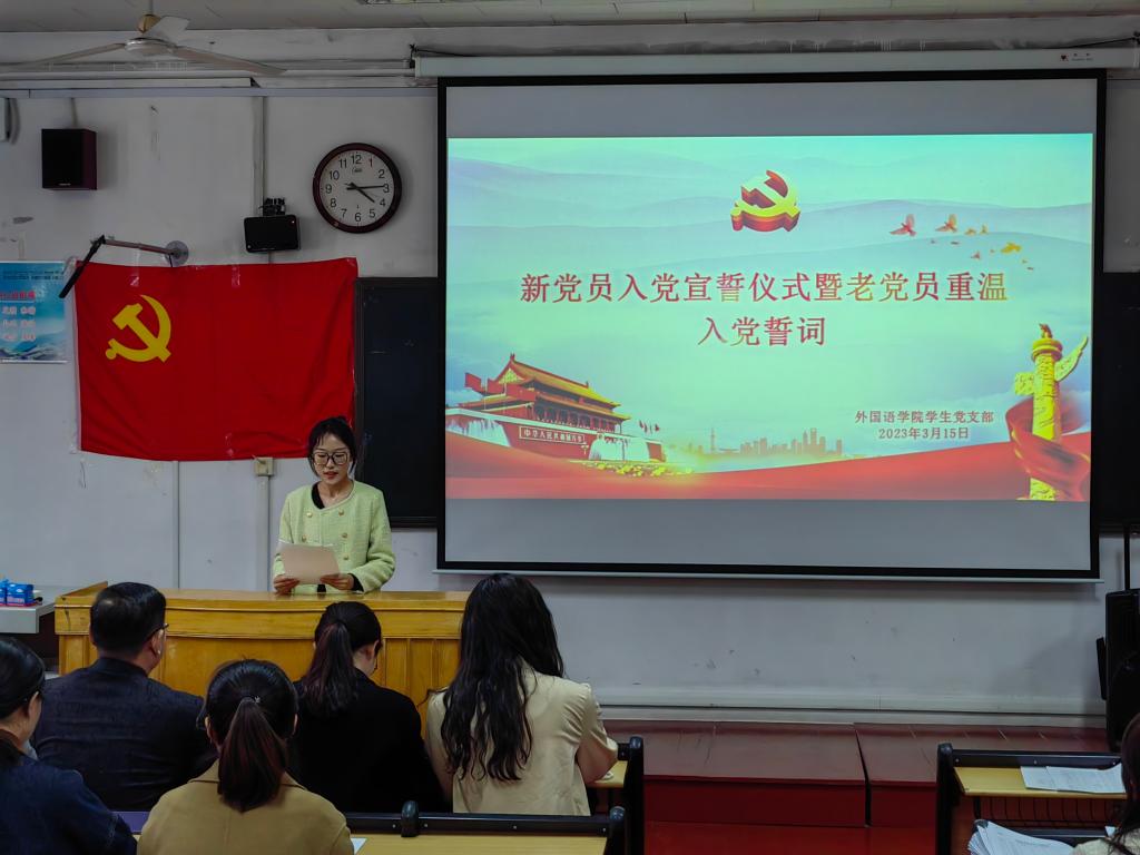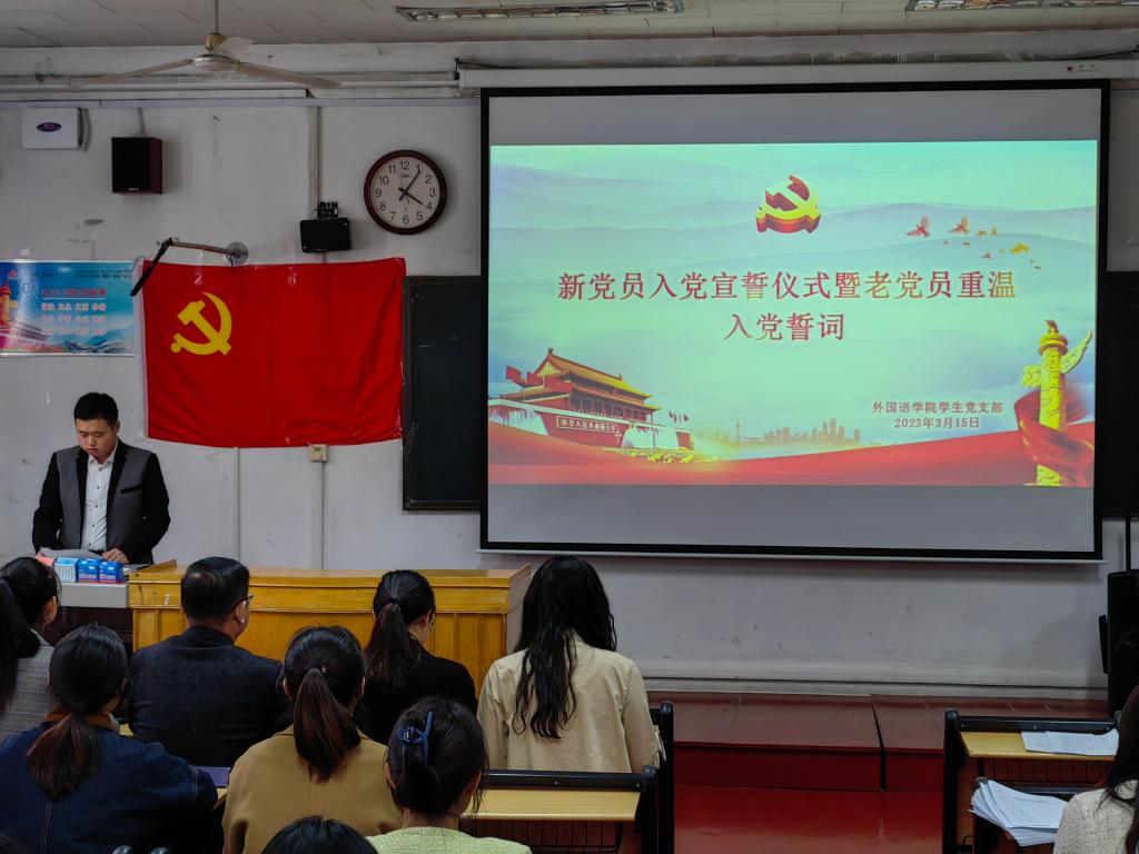 学生党支部于201室举办新党员入党宣誓仪式暨老党员重温入党誓词大会。会议由支部委员赵文彬主持,学院党委副书记王作茂莅临指导,学生党支部全体党员及入党积极分子代表参加。