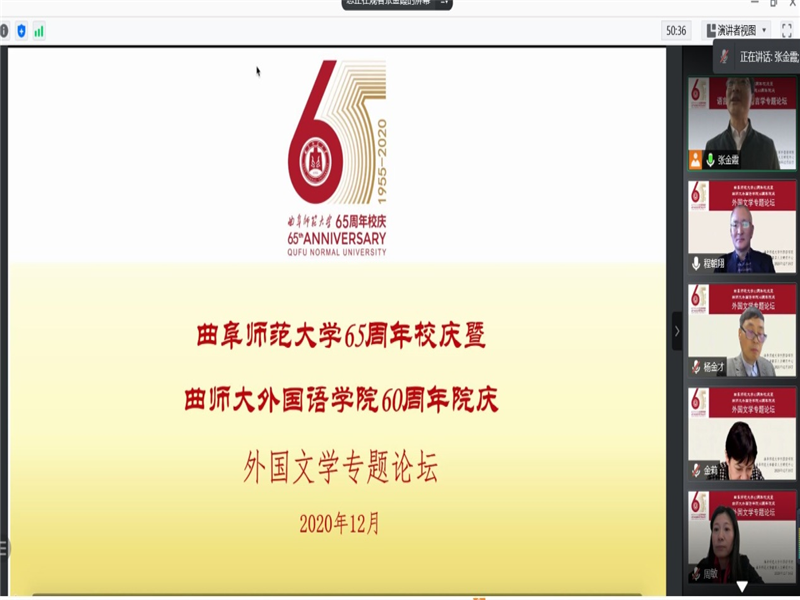 在我校建校65周年之际,为搭建研究生培养交流和合作的平台,增进研究生学术交流,提升研究生培养质量,合法赌博网站举办了外国文学专题学术论坛。2020年12月18日上午8:00,论坛在合法赌博网站